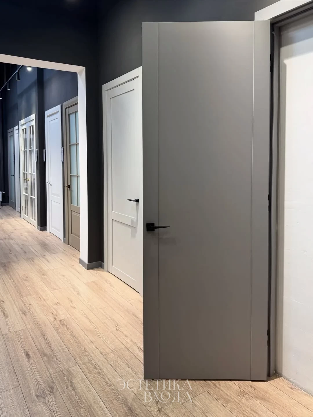 Матовое покрытие отличается особой прочностью, обладает высокими тактильными свойствами с эффектом “Soft-touch”, не требует особого ухода и сохраняет цвет на протяжении всего периода эксплуатации двери.