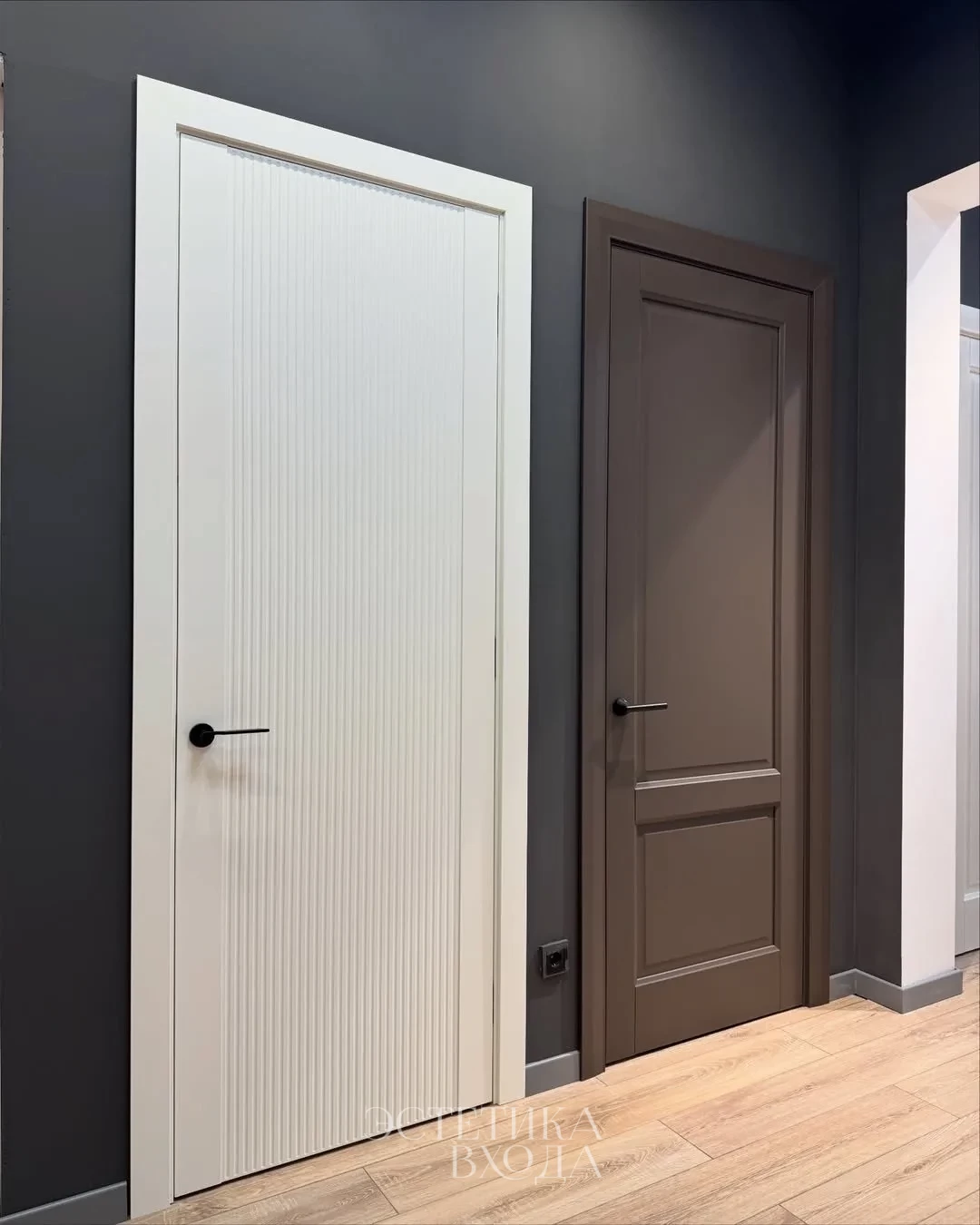 Матовое покрытие отличается особой прочностью, обладает высокими тактильными свойствами с эффектом “Soft-touch”, не требует особого ухода и сохраняет цвет на протяжении всего периода эксплуатации двери.