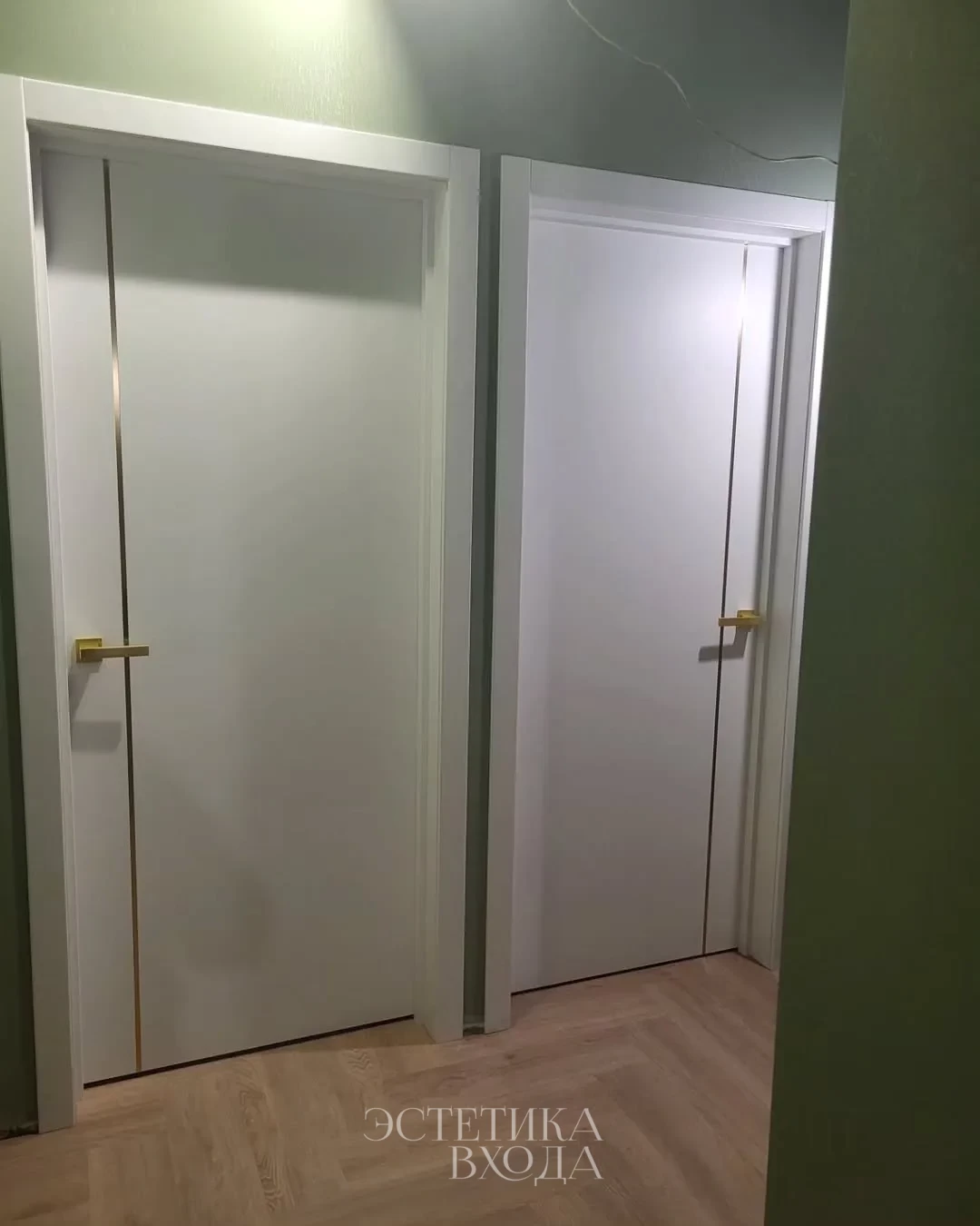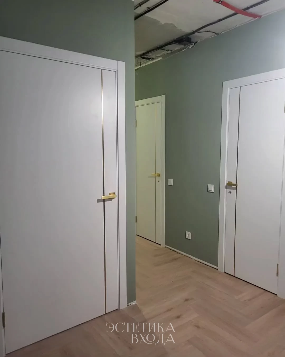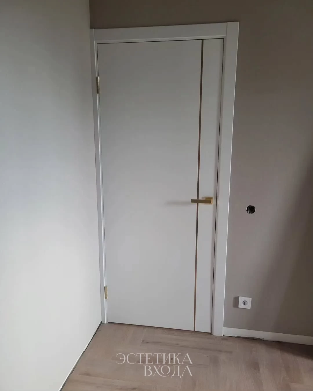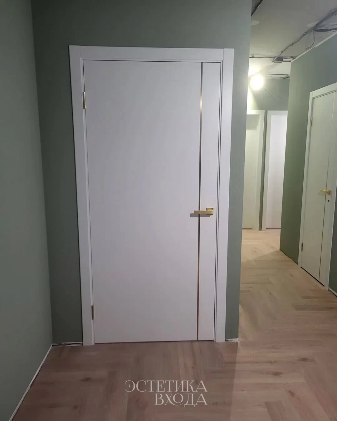 Межкомнатная дверь Line 01 Эмаль золотой молдинг