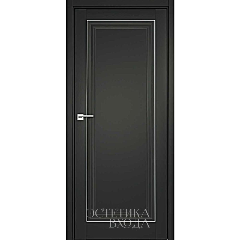 Современная неоклассическая дверь в глубоком черном с молдингом Хром