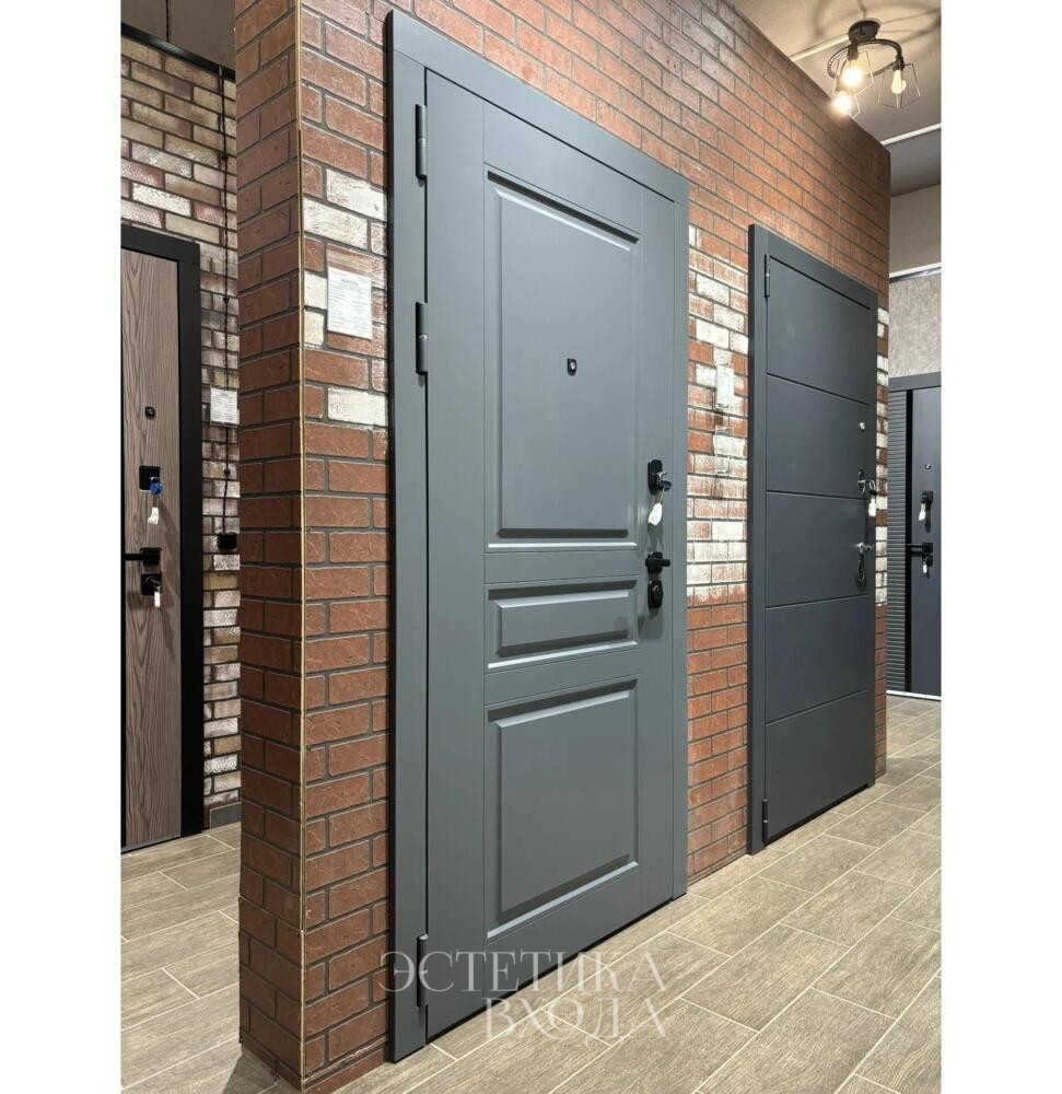 Неаполь дверь витринный образец 960 левая – это не просто защита, это визитная карточка, формирующая первое впечатление о вашем доме. С внешней стороны она встречает гостей элегантной МДФ панелью в изысканном сером цвете. Классический дизайн филенчатой двери придает ей респектабельный и утонченный вид, намекая на безупречный вкус хозяев.