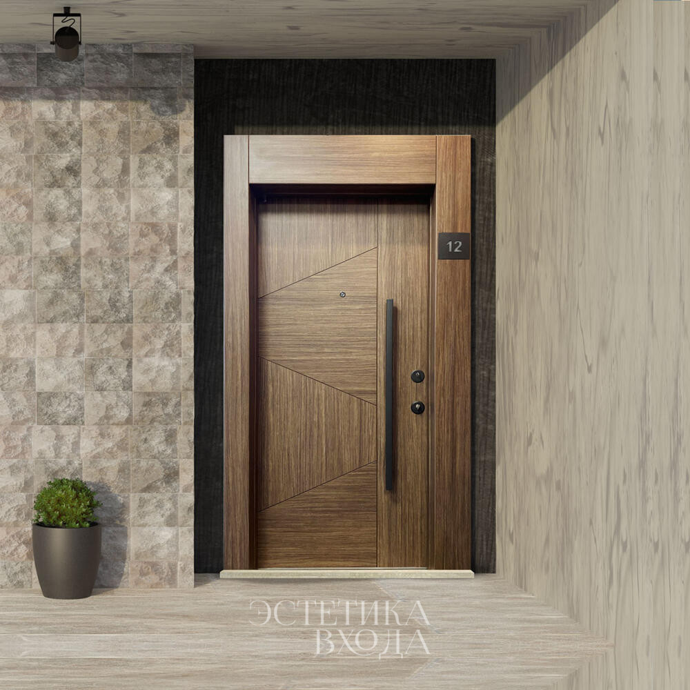 Откосы входная дверь / расширенный наличник шпон. Входная дверь – это не просто функциональный элемент здания, но и важная часть его архитектурного облика, визитная карточка дома. Поэтому оформлению дверного проема и самой двери стоит уделить особое внимание. Речь идет о таких элементах, как обрамление откосов, портал и обшивка входной двери. Каждый из них выполняет как практическую, так и эстетическую функцию, создавая завершенный и гармоничный образ. Откосы входная дверь / расширенный наличник шпон