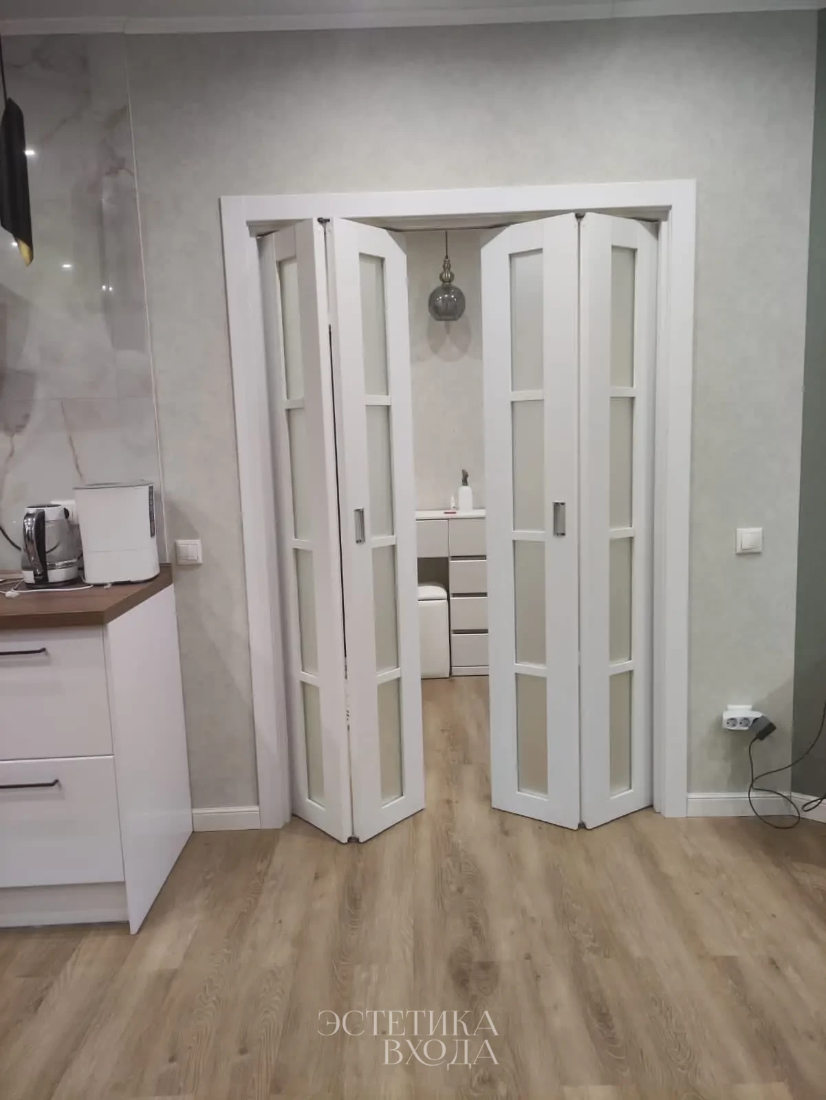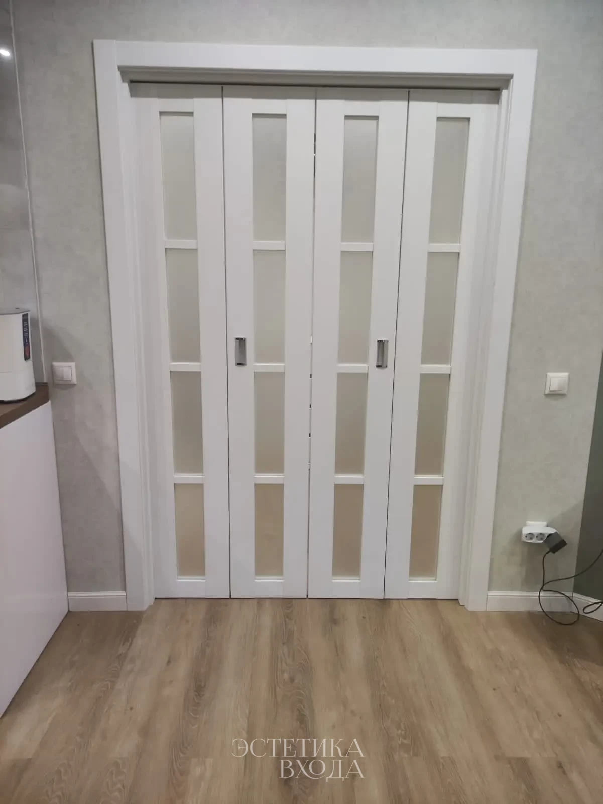 Складная дверь книжка FK028 экошпон белый матовое стекло