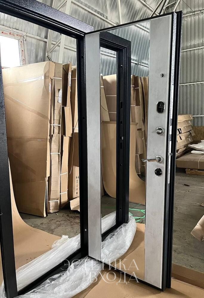 Входная дверь 9см Букле Графит зеркало бетон снежный