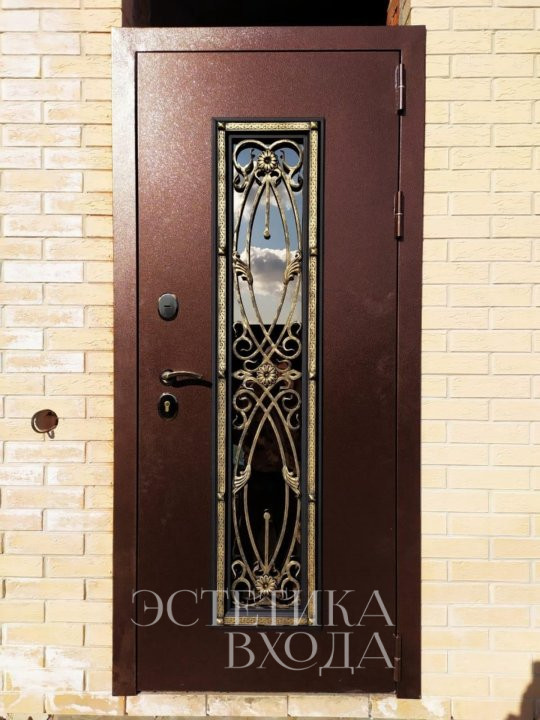 Глубокий, насыщенный оттенок “антик медь” притягивает взгляд, а элегантная резная решетка придает двери особенный шарм и неповторимость. Большое остекление не только добавляет света в прихожую, но и открывает прекрасный вид на окружающий мир, создавая ощущение простора и легкости.