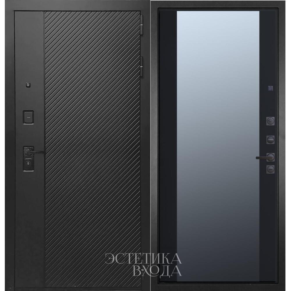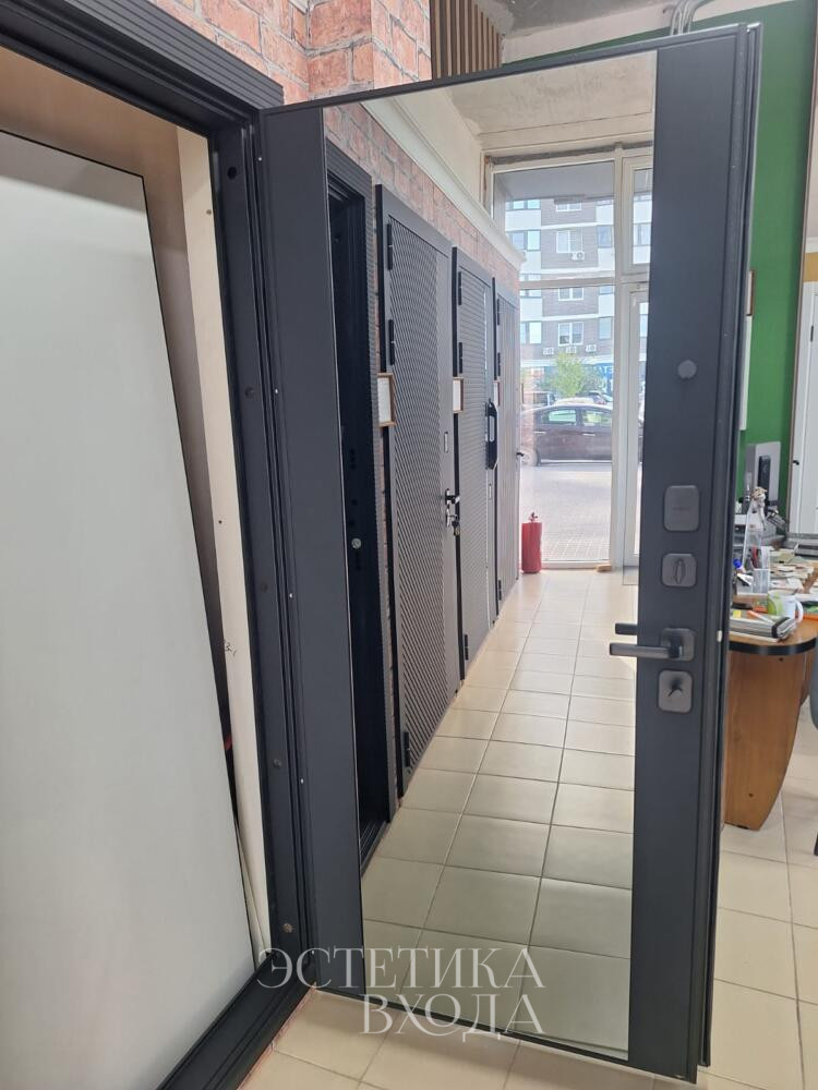 Входная дверь Гранит Симметрия рейка -В наличии 6 варианта внутренних панелей – графит, белая, под покраску (идеально к срытым дверям), белое зеркало со смещением, черное мдф зеркало графит, рейки белые.