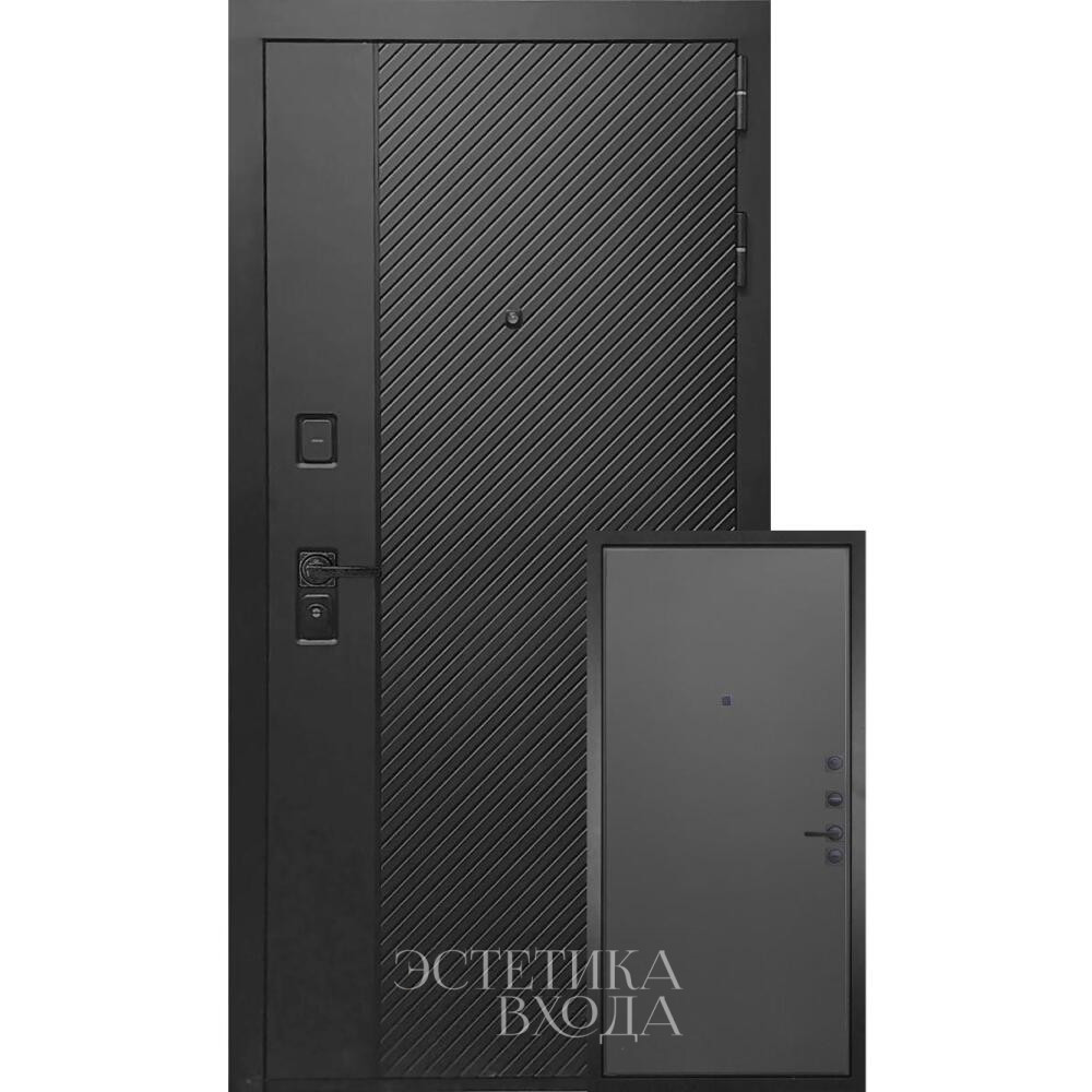Входная дверь Гранит Симметрия рейка -В наличии 6 варианта внутренних панелей – графит, белая, под покраску (идеально к срытым дверям), белое зеркало со смещением, черное мдф зеркало графит, рейки белые.