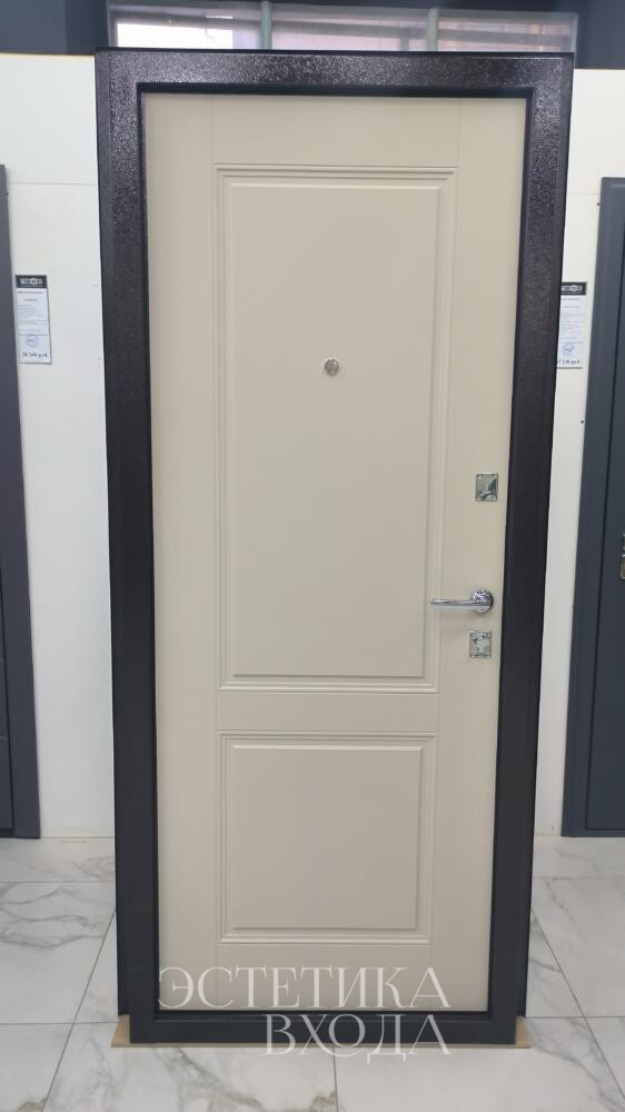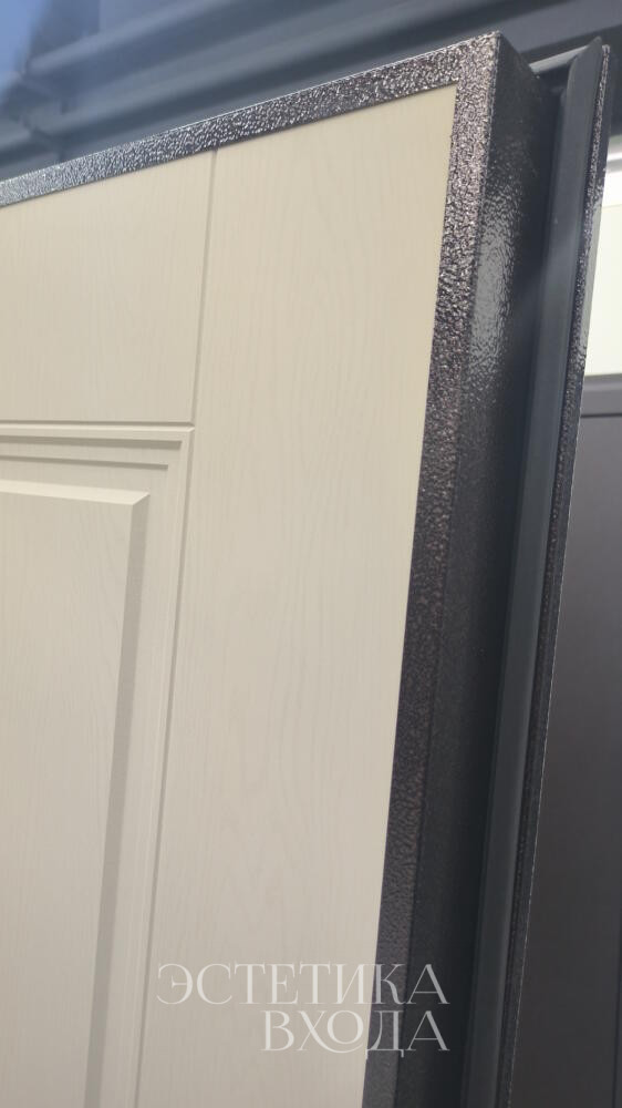 Входная дверь, словно портал в личное пространство, встречает взгляды изысканным сочетанием строгости и уюта. Строгая и минималистичная внешняя панель вносит акцент.