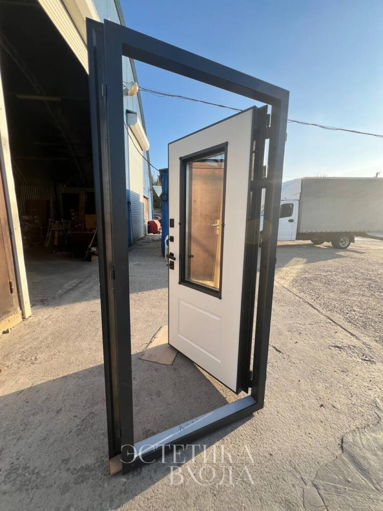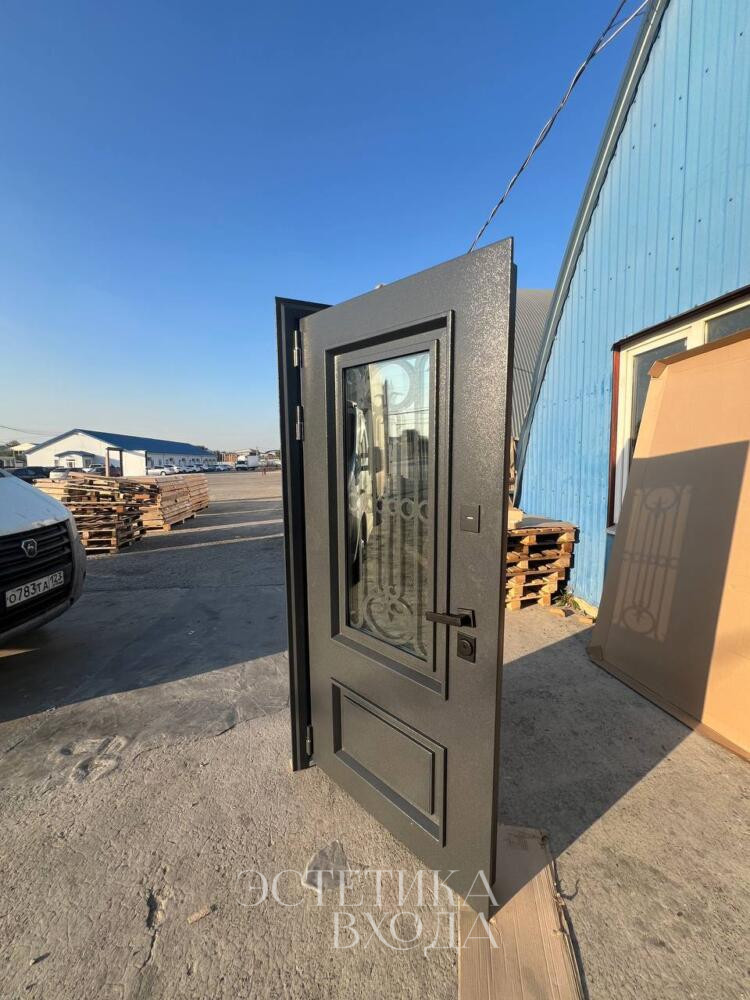 Уличная дверь со стеклопакетом и ковкой в наличии от завода Феррони
