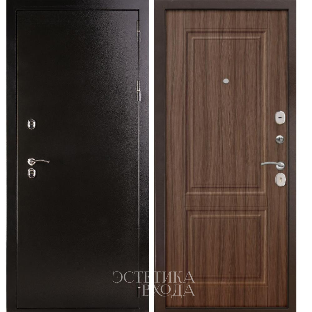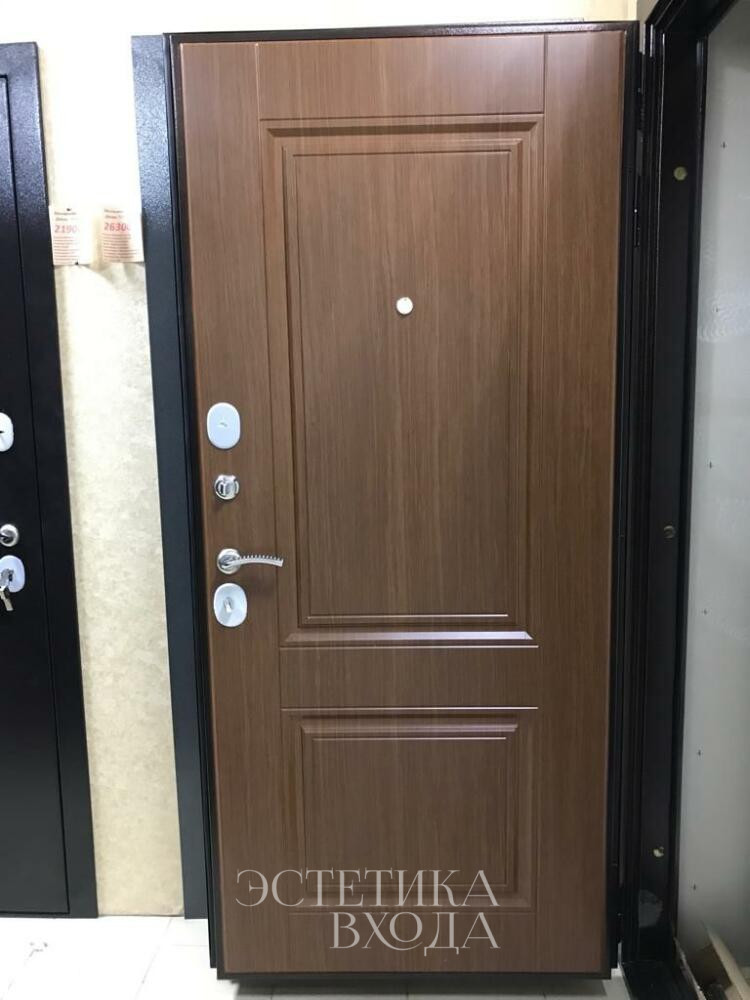 Входная дверь Сатурн , словно страж домашнего очага, встречает и провожает, создает первое впечатление о доме и его обитателях. Массивная конструкция, облицованная снаружи листом металла насыщенного коричневого цвета, говорит о надежности и безопасности. Классическая фрезеровка , строгими линиями прорезающая металлическую поверхность, придает двери элегантный парадный вид. Эти вертикальные полосы, словно стремящиеся ввысь, визуально увеличивают высоту проема, добавляя величественности.