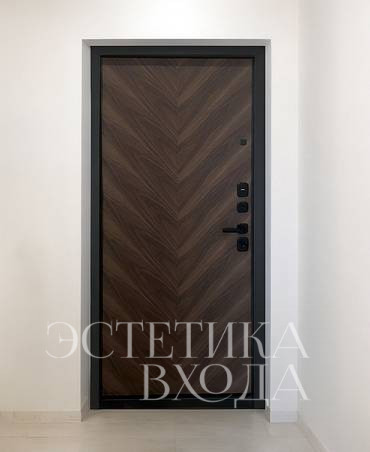 Входная дверь Мокко встречает не просто как преграда, а как портал в личное пространство, где уют и безопасность сплетаются в гармоничный союз. Снаружи – MDF-панель, облаченная в теплые, землистые тона коричневого дерева, словно приглашает прикоснуться к самой природе. Геометрический рисунок фрезеровки, необычный и притягательный, играет тенями, создавая ощущение глубины и объема, выделяя дверь из серой массы однотипных решений.